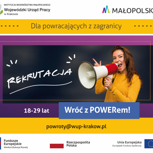Projekt „Wróć z POWERem!” pomaga powracającym z zagranicy! Wojewódzki Urząd Pracy w Krakowie realizuje projekt „Wróć z POWERem!” już od roku wspiera młodych ludzi wracających z zagranicy do Małopolski. Pomogliśmy już...