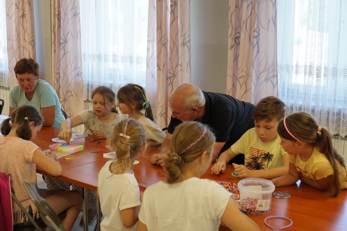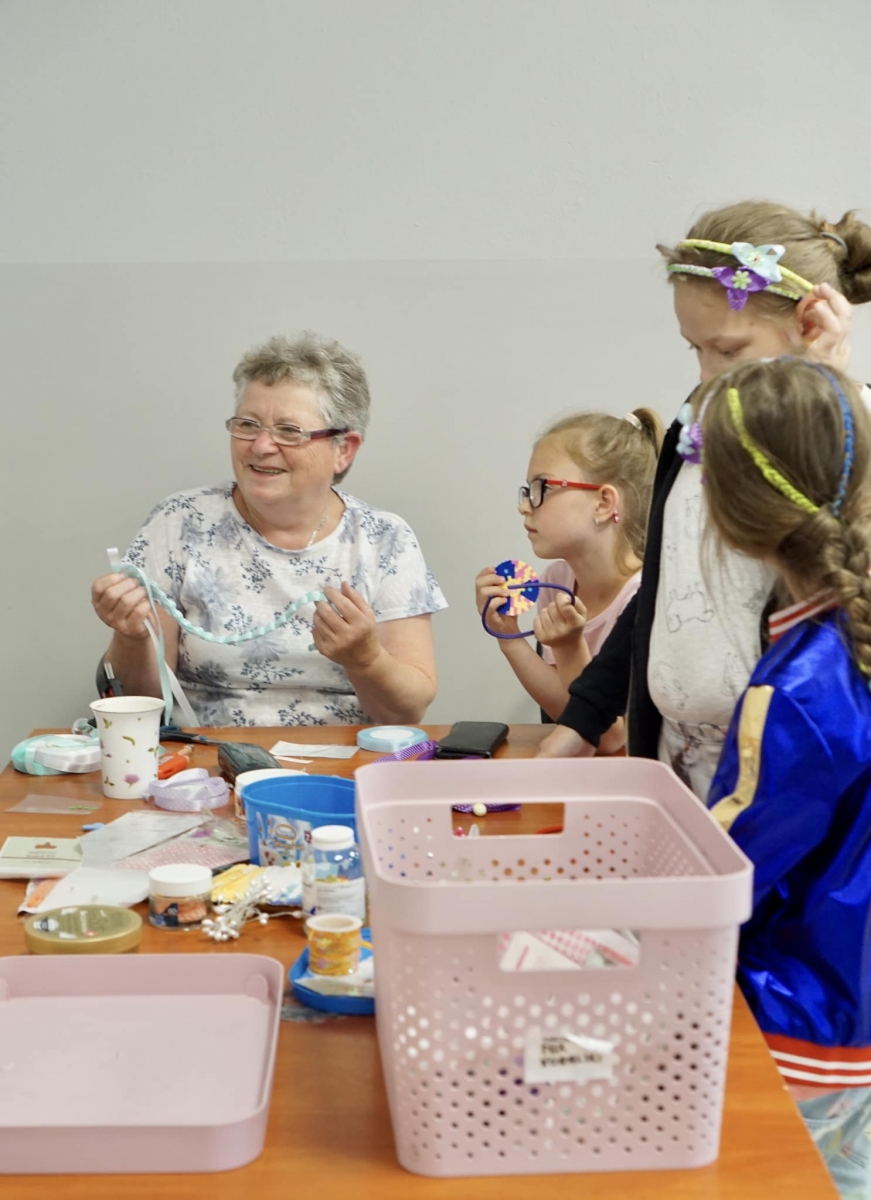 W ramach współpracy z Centrum Kultury w Korzennej przeprowadzone zostały zajęcia –„Wakacje z młodzieżą i dziećmi - Łączymy pokolenia”. Wspólnie robiliśmy opaski do włosów z kolorowych tasiemek oraz prasowaliśmy wzory z koralików.