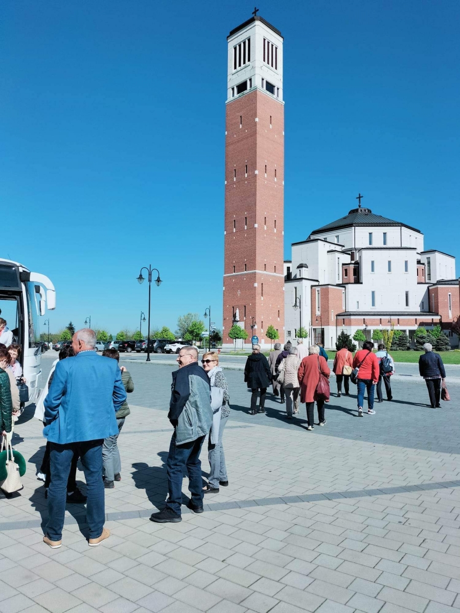 Wraz z naszymi przyjaciółmi z Dziennego Domu Senior+ w Mogilnie zorganizowano wycieczkę do Łagiewnik – „Seniorzy z wizytą u Jana Pawła II”. Mieliśmy okazję uczestniczyć we Mszy Sw. zwiedzać Sanktuarium, Muzeum, wysłuchać bardzo ciekawych wykładów na temat Całunu Turyńskiego. A dla nie strudzonych było wejście na wieżę liczącą 256 schodów.