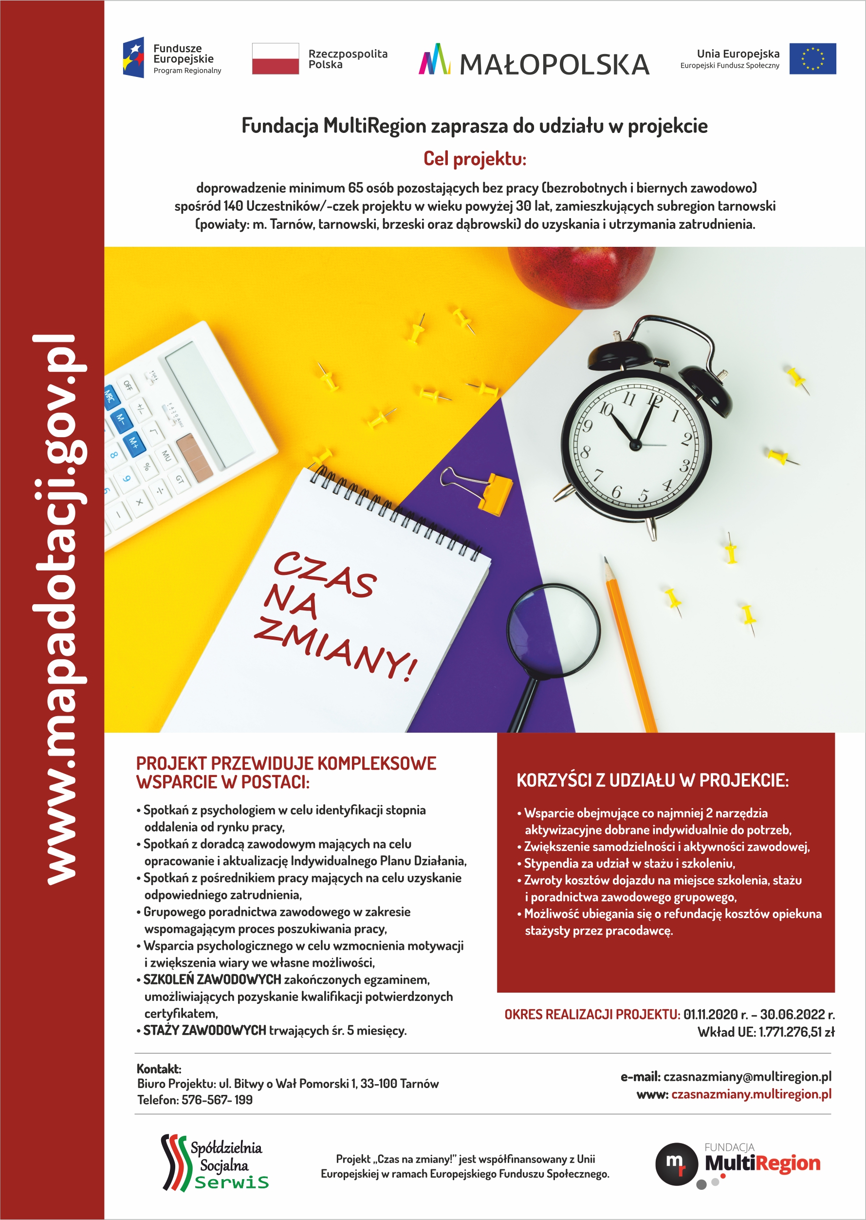 Informujemy, że od dnia 01.11.2020 r. realizujemy projekt "Czas na zmiany!"