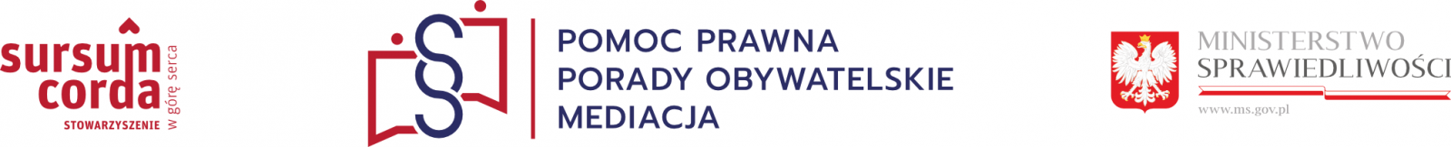 Stowarzyszenie Sursum Corda realizuje projekt powierzony przez POWIAT NOWOSĄDECKI, w ramach którego prowadzimy nieodpłatną pomoc prawną, nieodpłatne poradnictwo obywatelskie oraz nieodpłatne mediacje.