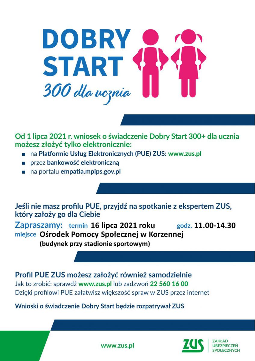Krótki Informator Jak uzyskać Świadczenie Dobry Start - 300 zł dla ucznia.