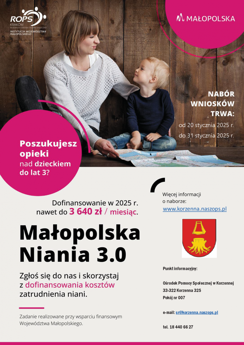 Nabór wniosków o świadczenie "Małopolska Niania 3.0"