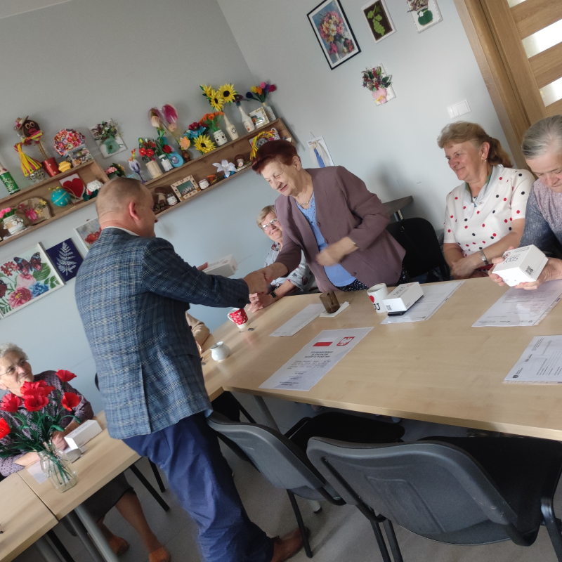 Wójt Gminy Korzenna – Pan Leszek Skowron odwiedził seniorów w Dziennym Domu Senior+ w Mogilnie i przekazał opaski bezpieczeństwa. Podczas spotkania poruszone zostały m.in. tematy związane z potrzebami osób starszych i możliwościami udogodnień dla seniorów.
