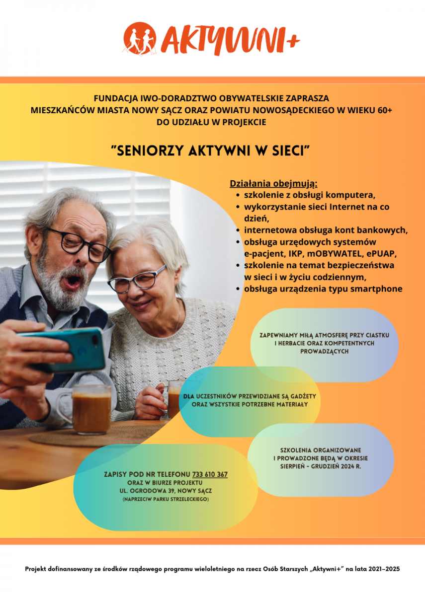Fundacja IWO-DORADZTWO OBYWATELSKIE zaprasza mieszkańców miasta Nowy Sącz oraz powiatu nowosądeckiego w wieku 60+ do udziału w projekcie „Seniorzy aktywni w sieci”.