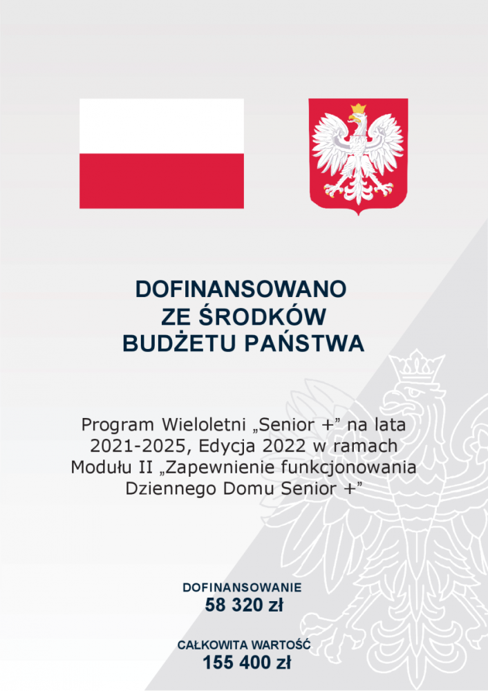 Dotacja jest przeznaczona na dofinansowanie zadania polegającego na zapewnieniu funkcjonowania ośrodka wsparcia dla osób starszych w zakresie ustalonym w programie wieloletnim „Senior +” na lata 2021-2025, Edycja 2022 w ramach Modułu II „Zapewnienie funkcjonowania Dziennego Domu Senior +".